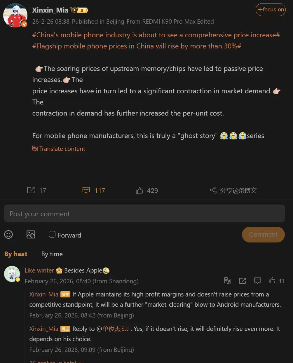 Η Product Manager της REDMI, Hu Xinxin, επιβεβαίωσε σήμερα ότι το αυξανόμενο κόστος upstream memory chips αυξάνει άμεσα τα downstream έξοδα κατασκευής κινητών τηλεφώνων. Αυτή η κατάσταση δημιουργεί έναν προκλητικό κύκλο για την τιμολόγηση συσκευών, οδηγώντας τελικά σε υψηλότερο κόστος για τους καταναλωτές σε όλο το οικοσύστημα smartphones της Xiaomi.